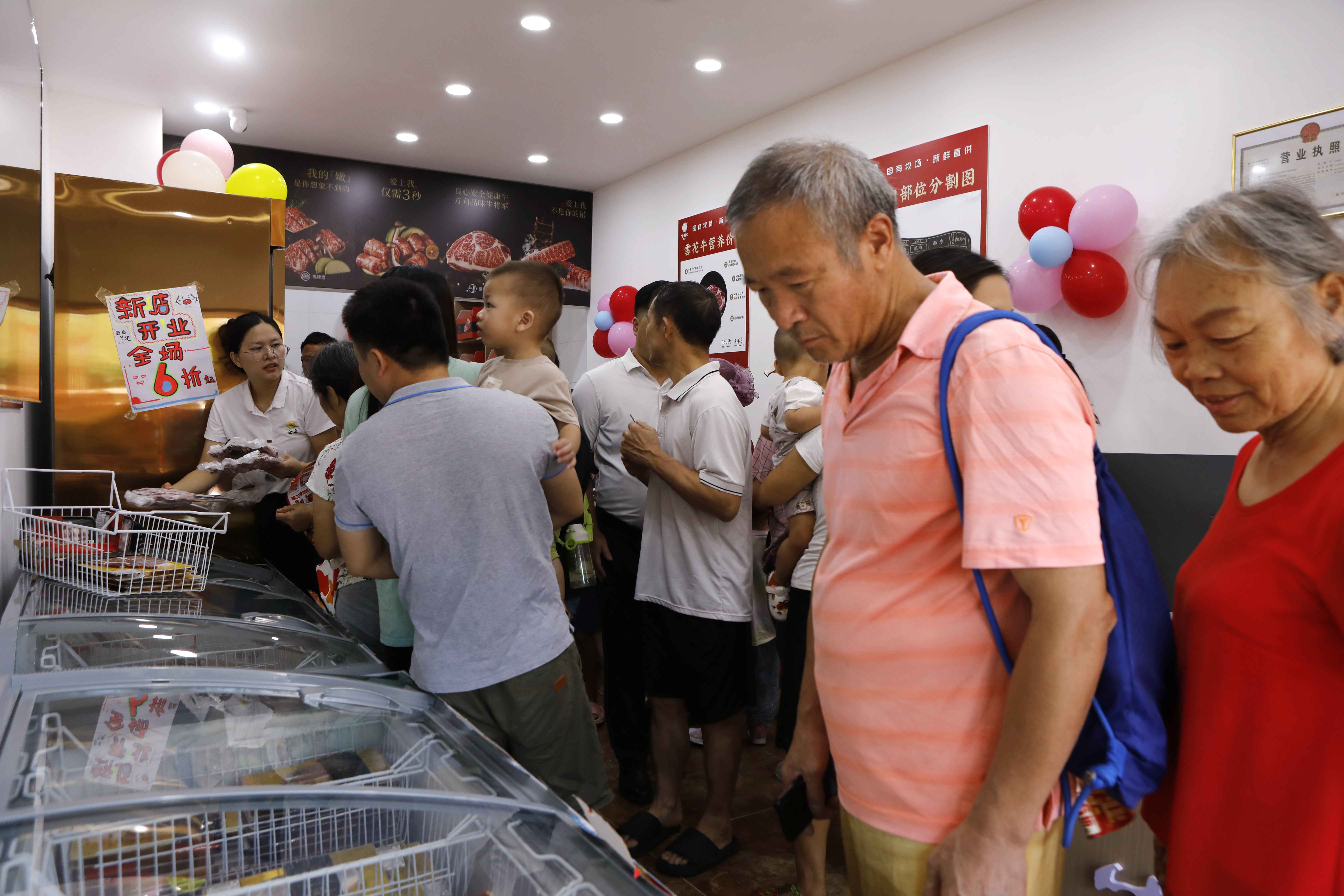 開業(yè)現(xiàn)場(chǎng),賓客云集、花籃錦簇、鑼鼓喧囂。優(yōu)質(zhì)的產(chǎn)品和開業(yè)酬賓的實(shí)惠價(jià)格,吸引了不少周邊居民前來(lái)選購(gòu)心儀的商品。店內(nèi)的工作人員從和牛不同部位的口感風(fēng)味、烹飪方式等方面詳細(xì)地為每一位顧客進(jìn)行了介紹。冷柜里種類繁多、紋路豐富、成色鮮亮的產(chǎn)品直觀地展現(xiàn)了和牛品質(zhì)的優(yōu)良,現(xiàn)場(chǎng)試吃環(huán)節(jié)更是讓顧客們紛紛感嘆其肉質(zhì)的鮮美。