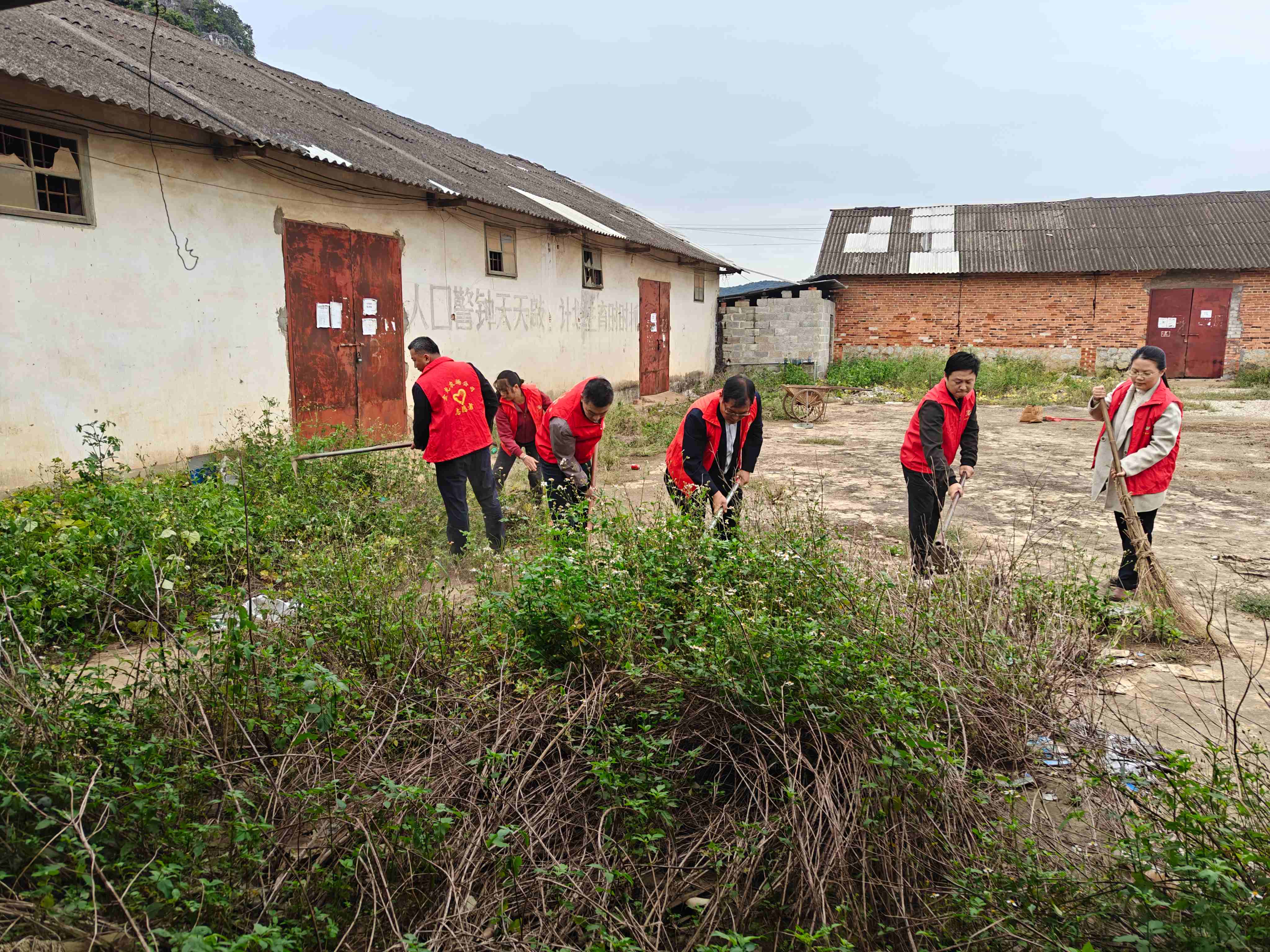▲雙甲黨支部全體黨員清掃環(huán)境衛(wèi)生