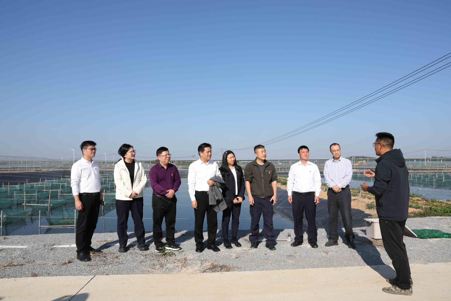 ▲參觀團(tuán)結(jié)特色水產(chǎn)養(yǎng)殖示范區(qū)